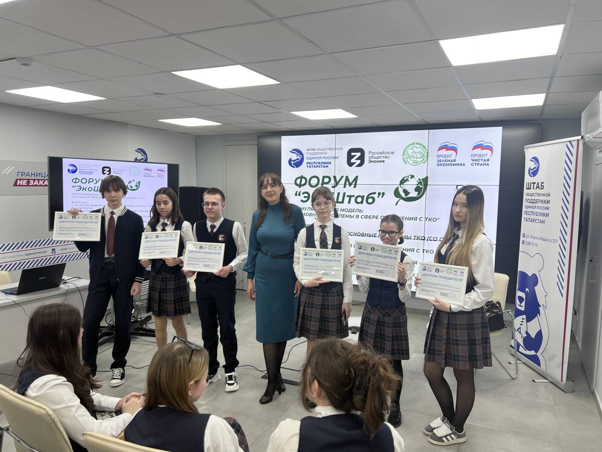 Штаб общественной поддержки «Единой России» в РТ провел форум для казанских школьников «ЭкоШтаб». Мероприятие, организованное совместно с Российским обществом «Знание» ко Дню российской науки, состоялось в рамках партийных проектов «Чистая страна» и «Зеленая экономика». В форуме приняли участие воспитанники эколого-технологического лицея №79 Казани.