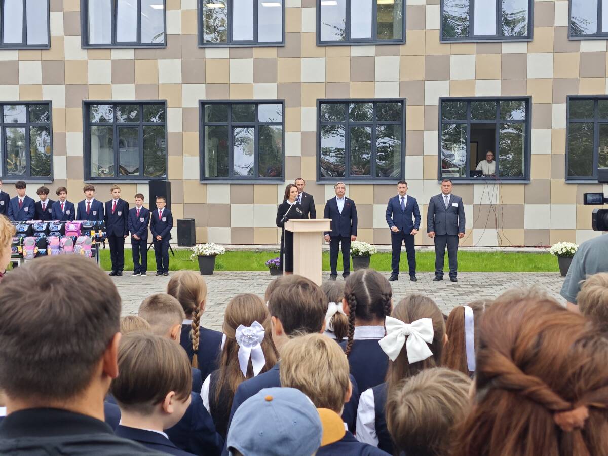 Глава района выразил уверенность, что обновленная школа будет способствовать развитию и успехам учеников. В рамках акции «Помоги собраться в школу» первоклассники получили портфели.