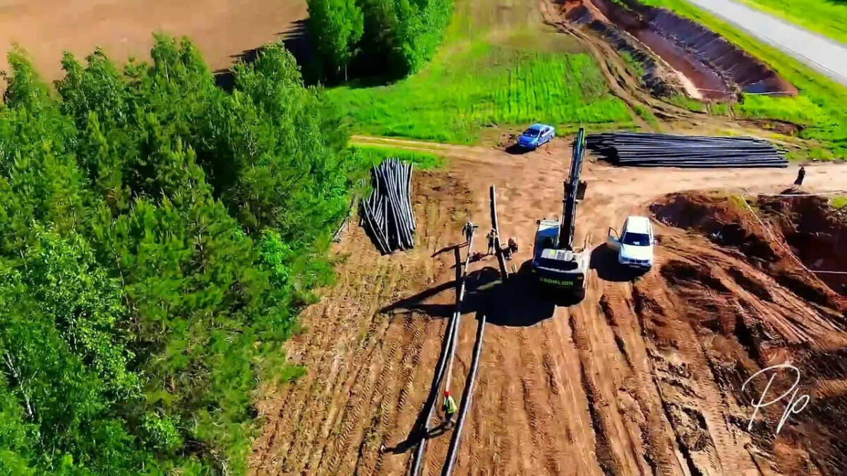 На текущий момент в районе ведется прокладка труб, работы проводятся открытым способом. На более сложных участках используется метод горизонтального бурения.