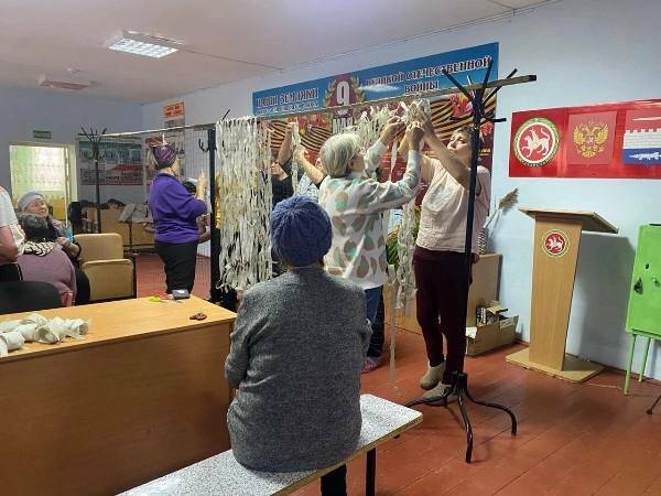 Жители Слободы Екатерининской Новошеминского района Татарстана изготавливают маскировочные сети и окопные свечи для бойцов, которые сейчас участвуют в специальной военной операции.