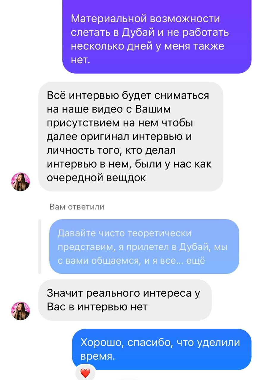 «Прилетайте в ОАЭ, я вам дам интервью»