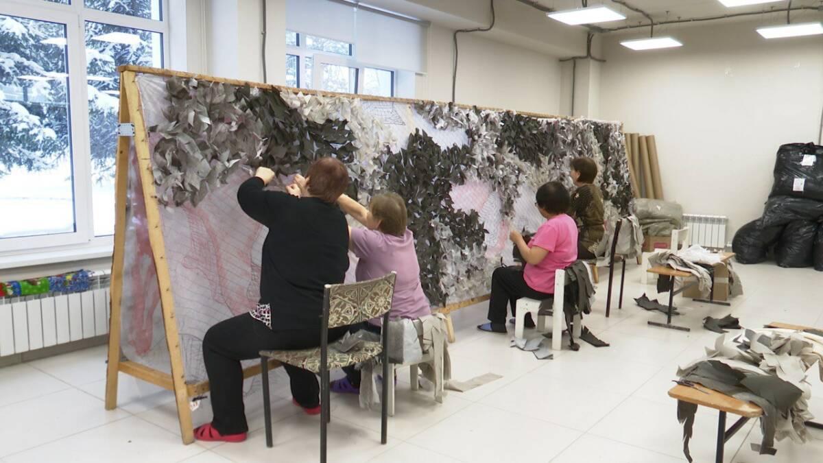 В Нижнекамске изготовлением занавеса занимается Альфред Федотов. Свои изделия мужчина приносит в цех, где женщины-волонтеры плетут маскировочные сети, оттуда все вместе с готовым снаряжением отправляют в зону проведения СВО.