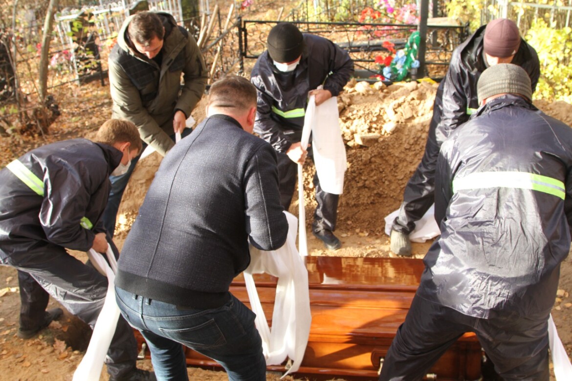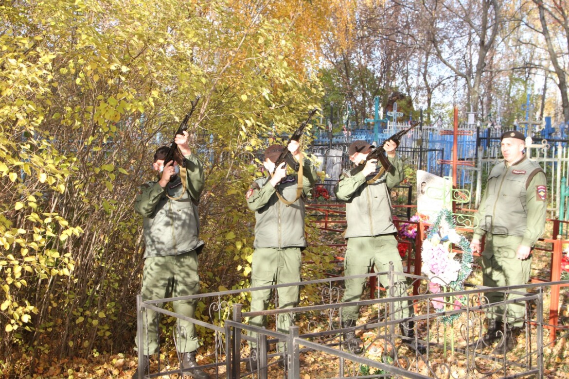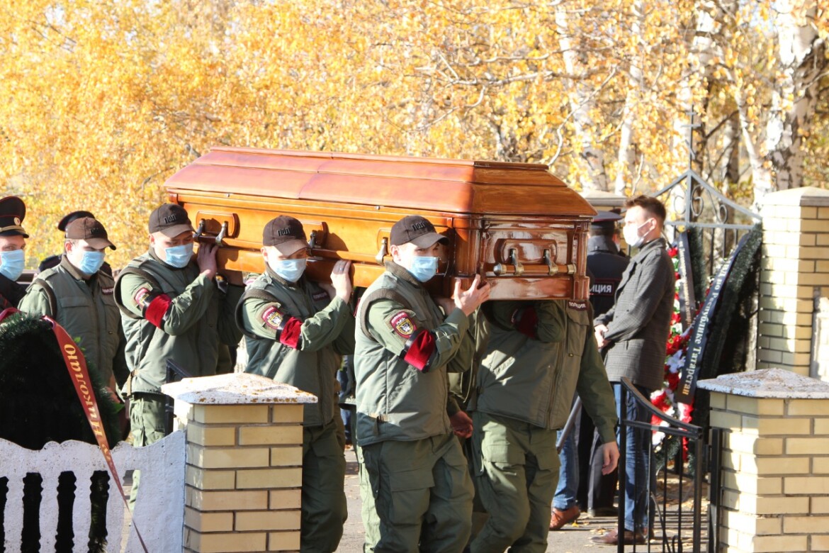 Перед тем, как опустить гроб в могилу и начать погребение, оркестр сыграл гимны России и Татарстана, а сотрудники Росгвардии произвели три залпа.