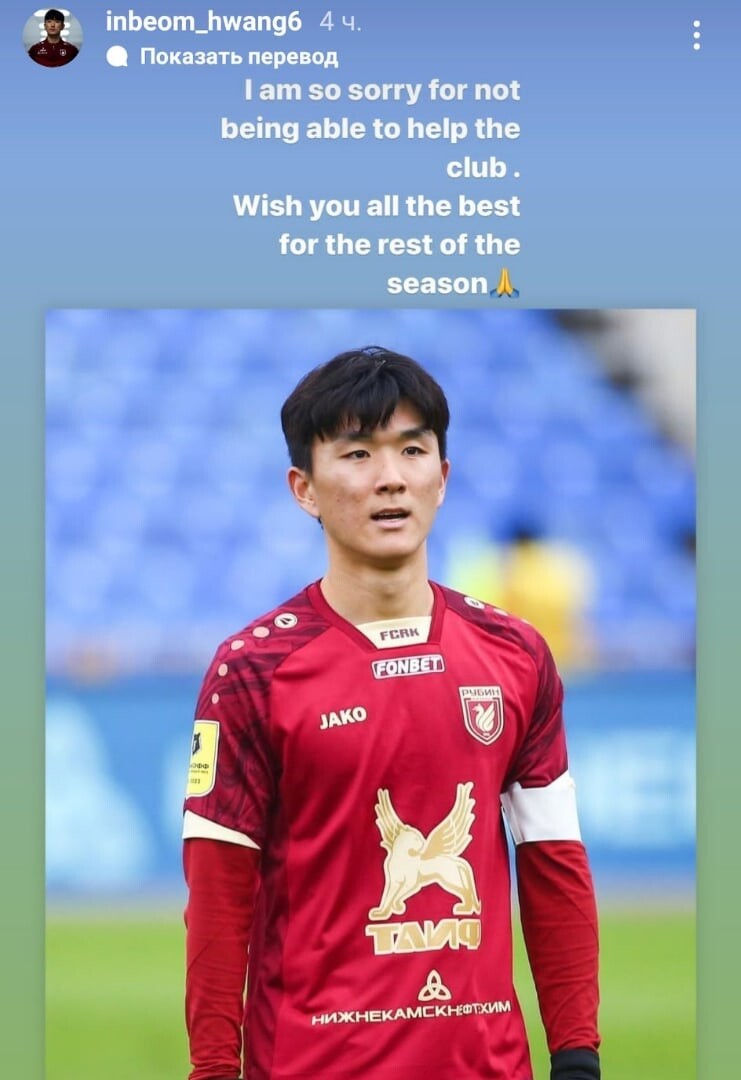 «Мне очень жаль, что я не могу помочь клубу. Желаю вам всего наилучшего в концовке сезона», – заявил Ин Бом в своем аккаунте Instagram (организация, признанная в России экстремистской).