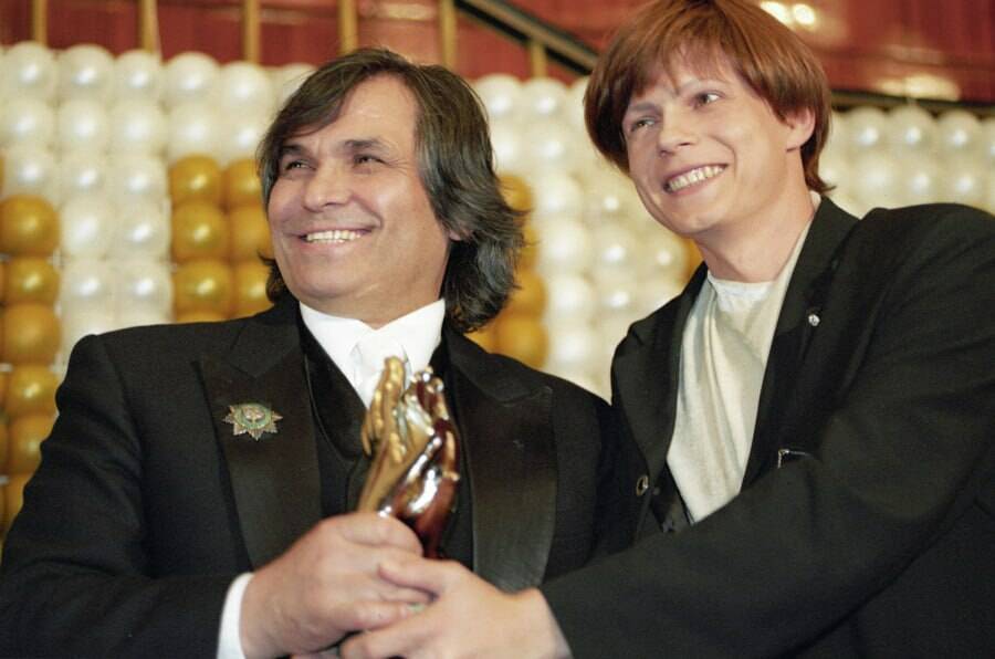 Руководитель поп-группы «На-на» Бари Алибасов и Владимир Левкин на церемонии вручения Национальной Российской премии «Овация», 1998