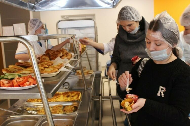 Еще одним местом притяжения стала столовая, где не осталось ничего от старого оснащения. Для столовой закупили новые плиты, холодильники, духовые шкафы, появилось разделение на цеха, санитарные зоны. Повара готовят разнообразно, с выдумкой. «Сегодня в школе у нас питаются 86% детей. Это хороший показатель, ведь ребенок достаточно много времени находится в школе, и важно, чтобы он был сытый, готовый к серьезной нагрузке», — отметила директор Елабужского института КФУ.