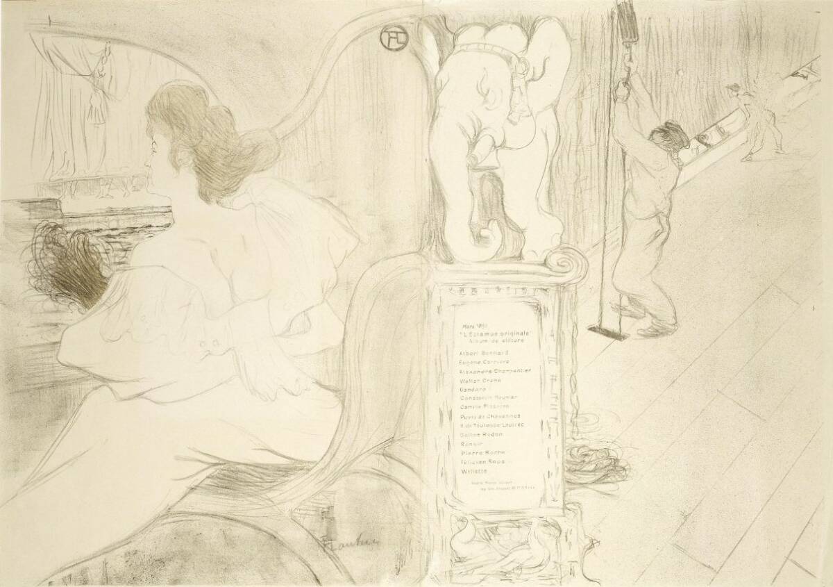 Одним из экспонатов финальной ротации выставки станет обложка для последнего выпуска «Оригинального эстампа». Ее в 1895 году создал Тулуз-Лотрек. Обложка складывалась пополам, поочередно открывая зрителю сцену и закулисье.