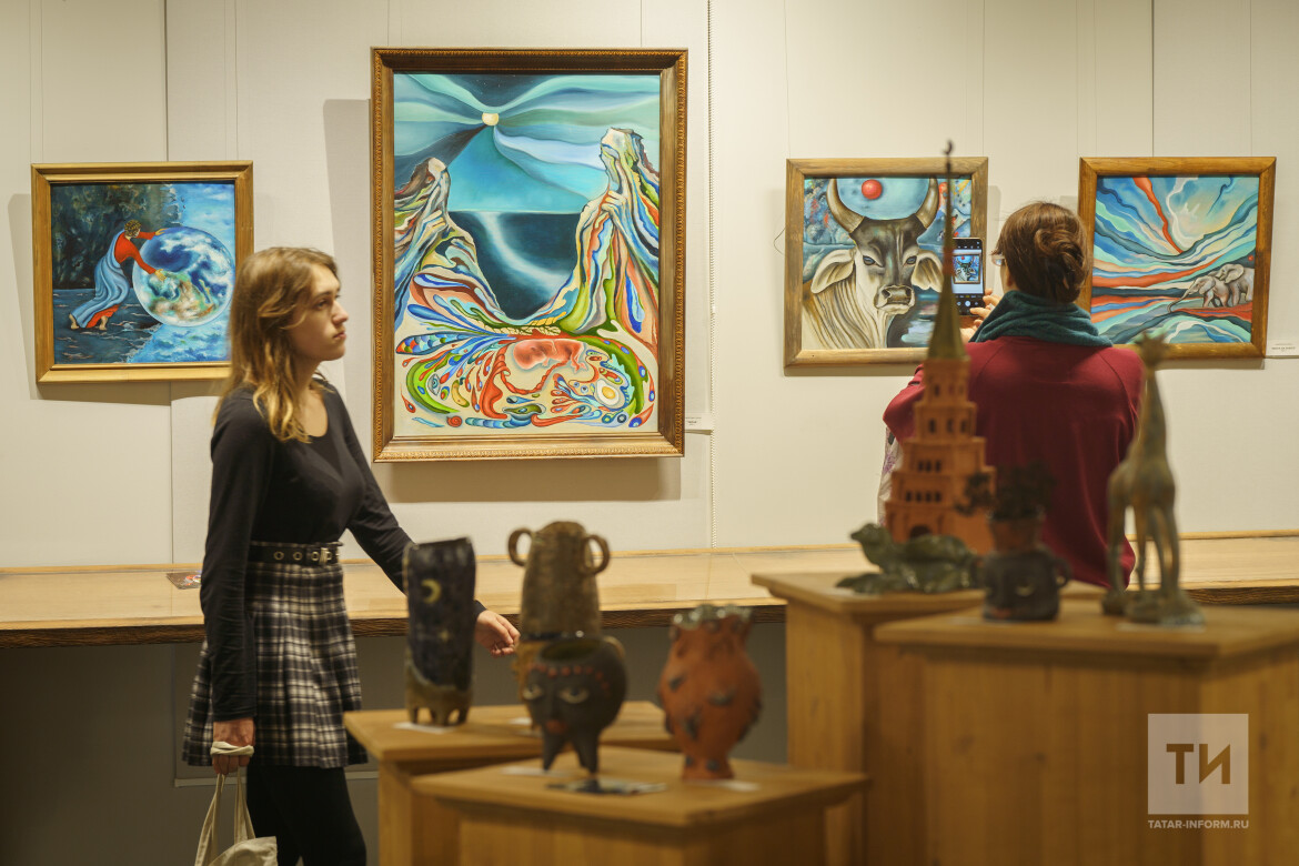В музее-галерее «Дом ART» открылась выставка картин «Мир трех параллелей», созданная художниками одной семьи. На двух этажах здесь представлены около сотни работ автора проекта сказочного здания Театра кукол «Экият», реставратора построек Казанского Кремля, Гостиного двора (Национального музея) заслуженного архитектора Татарстана, архитектора-реставратора высшей категории Светланы Мамлеевой, ее дочери Елены Мамлеевой и супруга Александра Простова-Покровского.