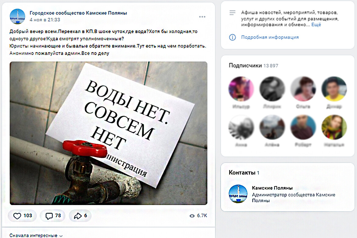 Мы, взрослые, может быть, и потерпели бы, но это уже не в первый раз! У нас маленькие дети, их тоже нужно кормить, мыть, стирать вещи и т.д., в поселке также живут бабушки и дедушки, которые не могут сходить за водой, инвалиды лежачие совсем, за ними тоже нужен ежедневный уход!» – описала ситуацию Милана Нигматуллина.