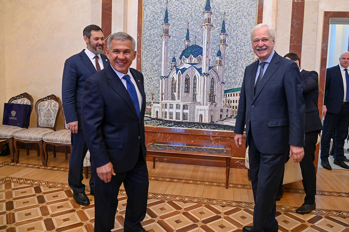 Сегодня рабочий день Раис Татарстана начал со встречи с послом России в Беларуси Борисом Грызловым. Рустам Минниханов напомнил, что Беларусь на протяжении последних лет стабильно входит в число лидеров среди внешнеторговых партнеров Татарстана. Тем не менее потенциал объема гораздо выше, поэтому и был организован визит большой делегации от республики.