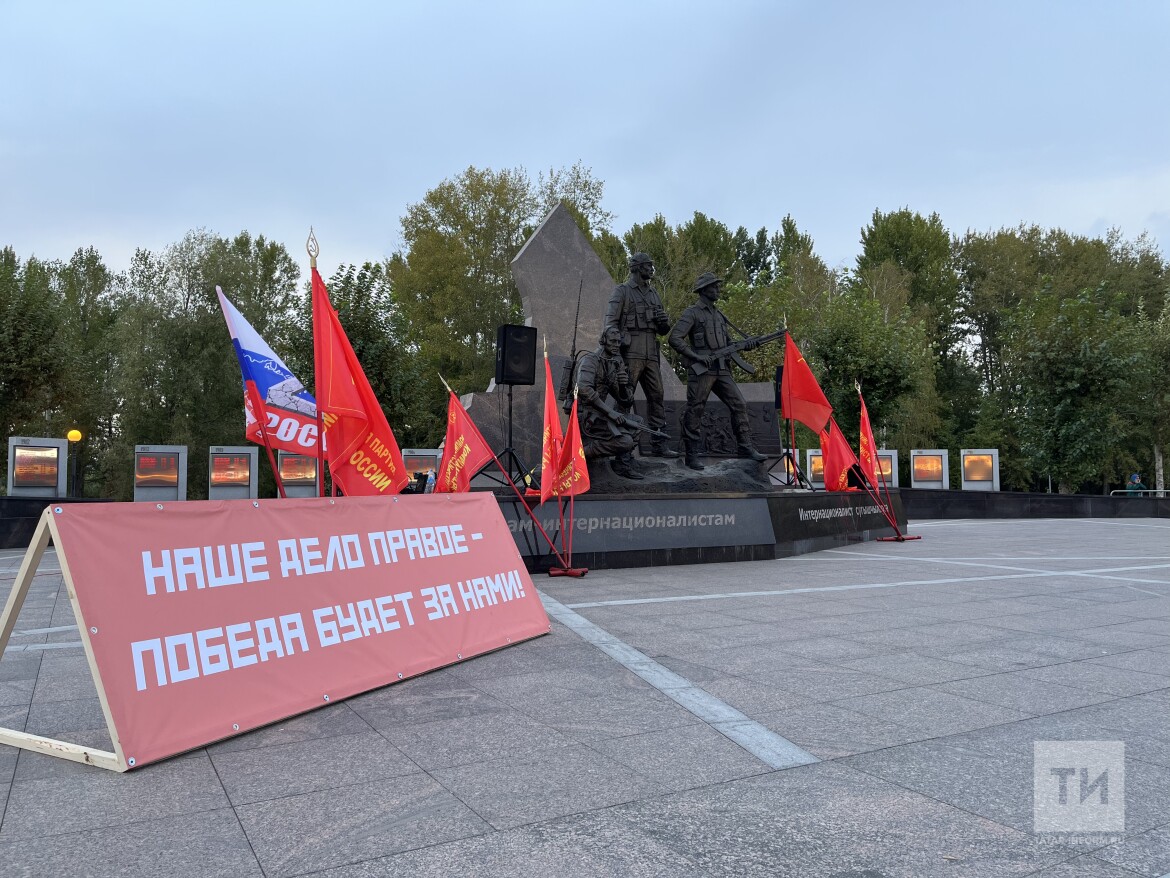 Десятки человек собрались сегодня в парке Победы в Казани возле нового памятника воинам-интернационалистам. Они пришли на митинг-концерт, чтобы поддержать Вооруженные силы России и жителей Донбасса.