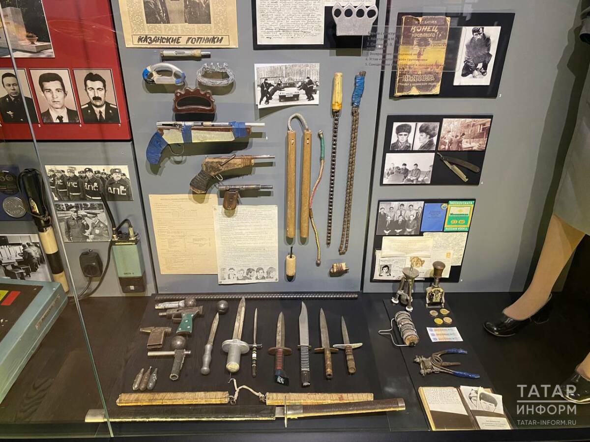 Следующая экспозиция посвящена «Казанскому феномену». Здесь хранится оружие участников известных татарстанских криминальных группировок — «Тяп-ляп» и «Хади Такташ», в том числе самодельные нунчаки, кастеты, ножи и самопалы.