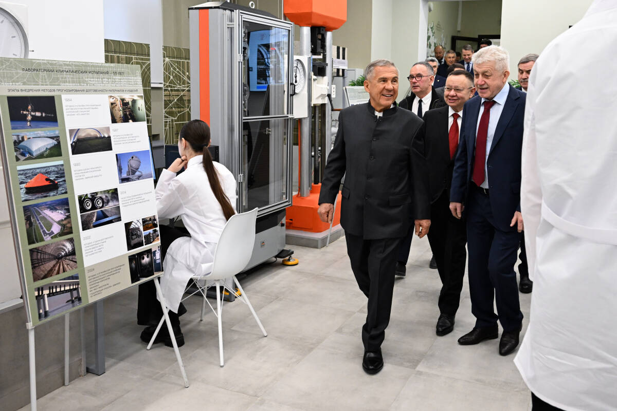 Файзуллин и Минниханов ознакомились с лабораториями по ускоренным климатическим испытаниям, технологиям изготовления композиционных материалов и цифровому моделированию этих материалов.