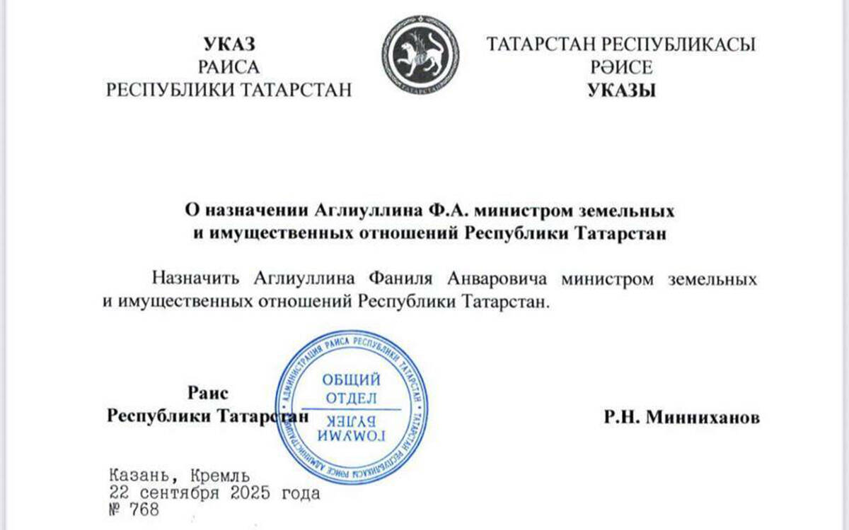 Фаниль Аглиуллин после перерыва вновь стал министром земельных и имущественных отношений Татарстана. Соответствующий указ подписал Раис РТ Рустам Минниханов.