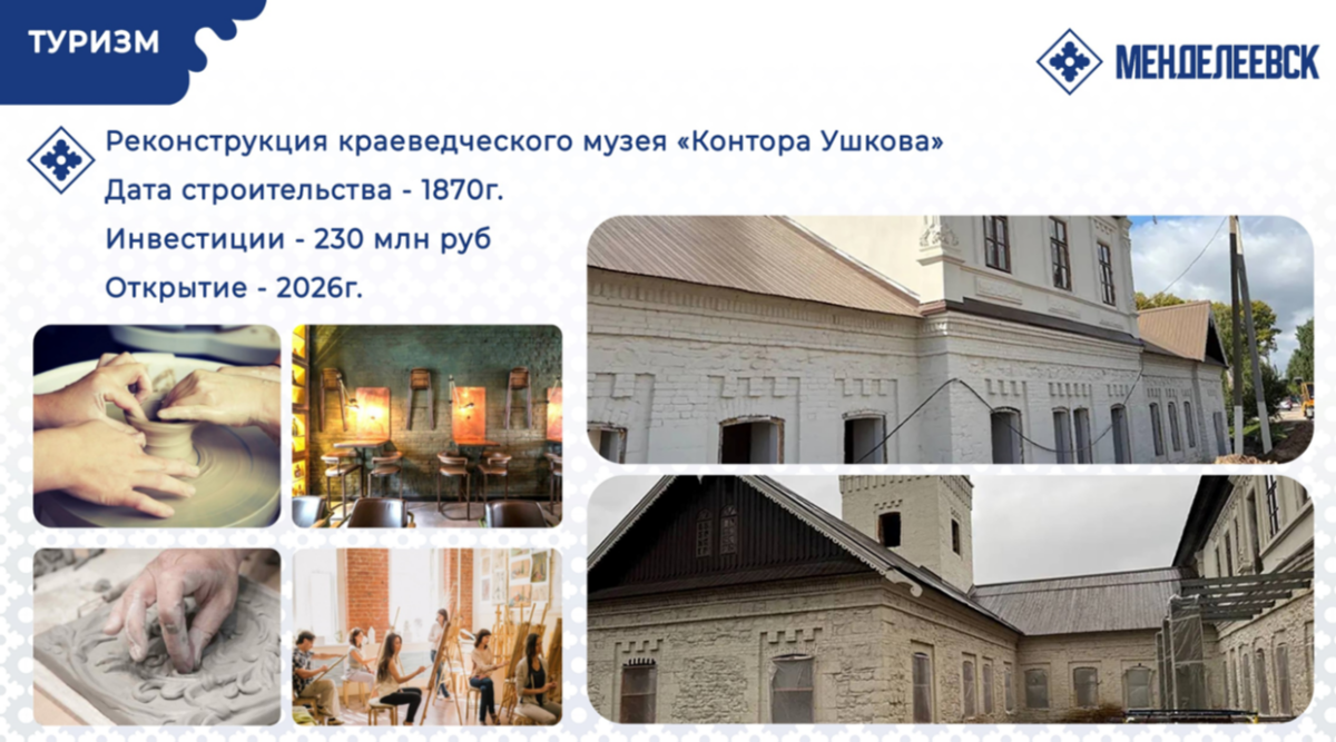 За последние четыре года туристический поток вырос вчетверо и достиг 70 тысяч человек. Ключевым проектом в будущем станет реконструкция краеведческого музея с историческим названием «Контора Ушковых и Ко». Открытие музея запланировано на 2026 год, а часть новых экспонатов уже была представлена на выставке «Империя Ушковых» в Казанском Кремле.