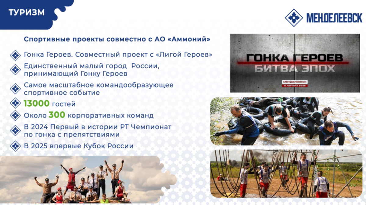 Продолжается развитие событийного туризма: федеральная «Гонка Героев» собрала более 13 тыс. участников и зрителей, район проводит крупные культурные фестивали – «Пастернаковские чтения», «Мы и Менделеевск».