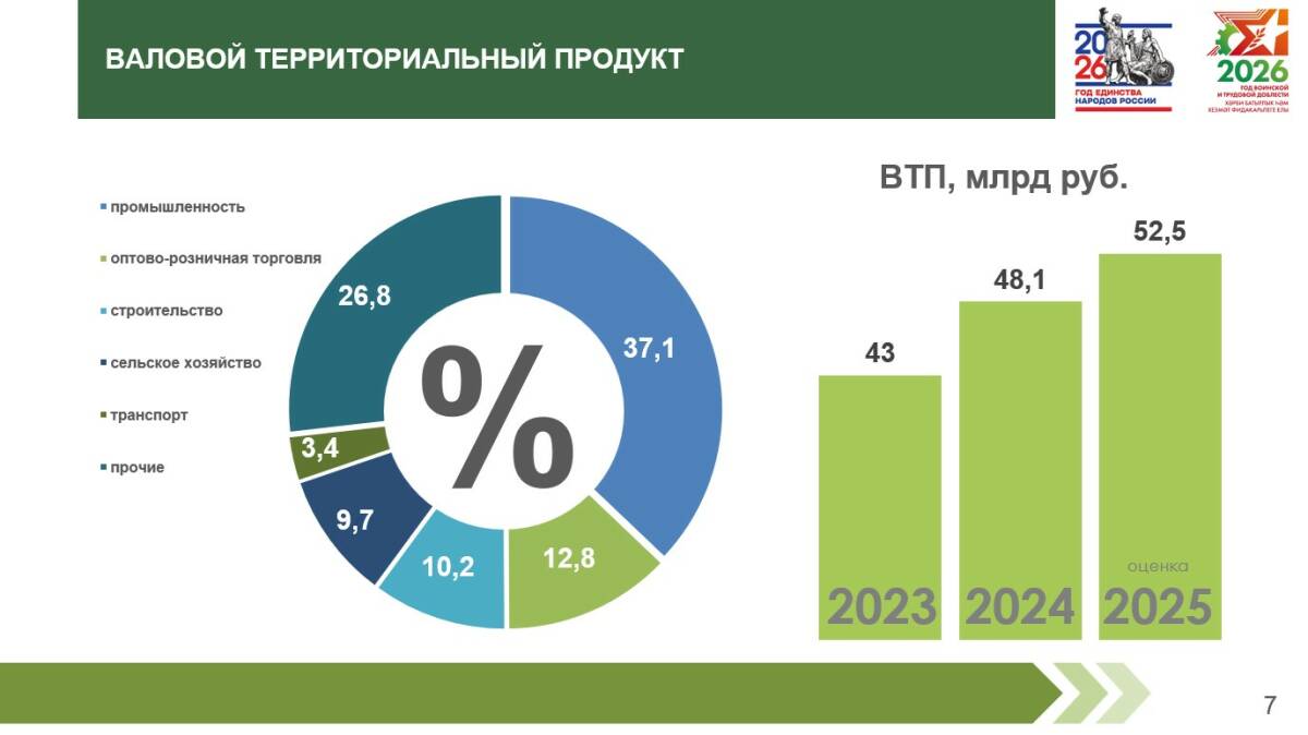 «Год назад мы говорили об амбициозной цифре – 47,6 миллиарда рублей валового территориального продукта. По предварительной оценке, этот показатель составил 52,5 миллиарда рублей за 2025 год», – рассказал Хисамутдинов.
