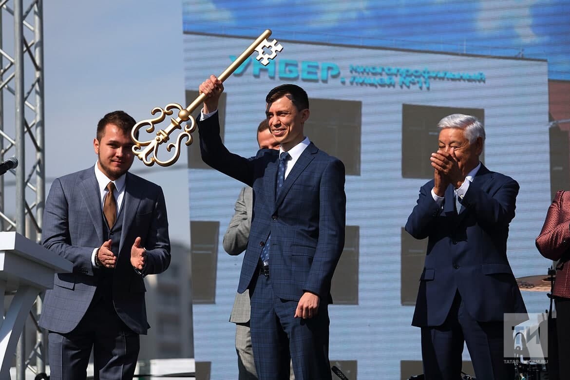 «В Советском районе Казани, в жилом комплексе „Арт Сити“, гостеприимно распахнула двери новая современная школа. Сегодня вместе с вами за парты сядут почти 450 тыс. учащихся, из них более 150 тыс. казанских ребят. В том числе впервые порог школы в Казани переступят около 20 тыс. первоклассников, в том числе около 200 „унберовцев“», — сказал глава парламента собравшимся.