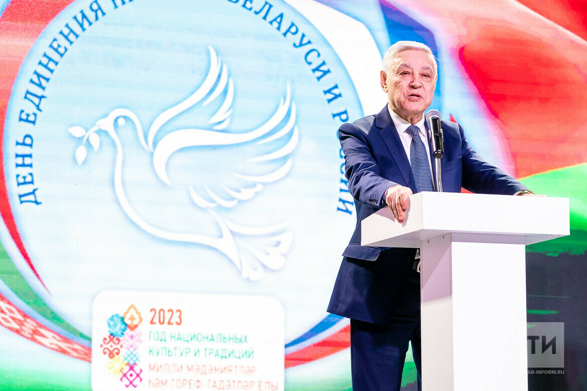 Народы России и Беларуси продолжают укреплять братские отношения через развитие глубоких культурных, торговых и экономических связей на государственном и региональном уровнях. Это особенно важно сегодня, когда две страны подвергаются беспрецедентному внешнему давлению. Об этом на торжественном мероприятии, приуроченном ко Дню единения народов Беларуси и России, рассказал руководитель Госсовета РТ председатель Совета Ассамблеи народов Татарстана Фарид Мухаметшин.