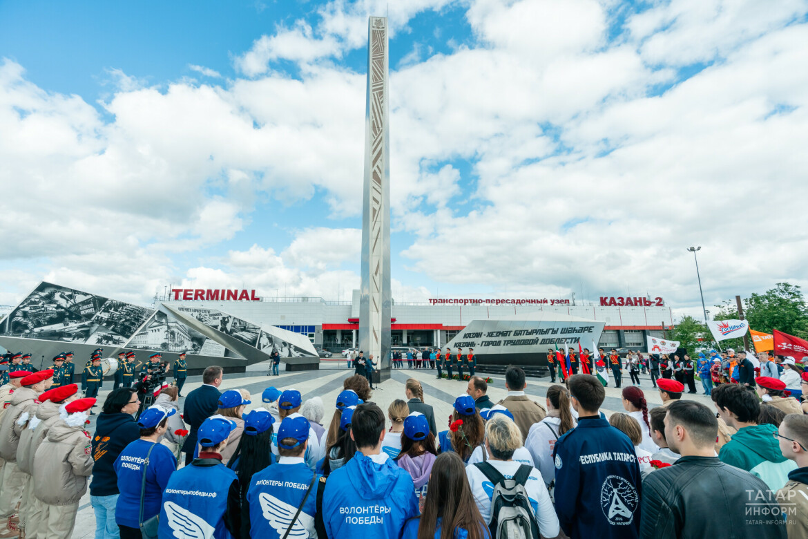 26-метровая стела «Казань – город трудовой доблести» появилась рядом с вокзалом «Казань-2» в прошлом мае. В церемонии открытия принимал участие Раис РТ Рустам Минниханов. Указом Президента России Владимира Путина звания «Город трудовой доблести» были удостоены 63 промышленных центра страны, включая Казань.