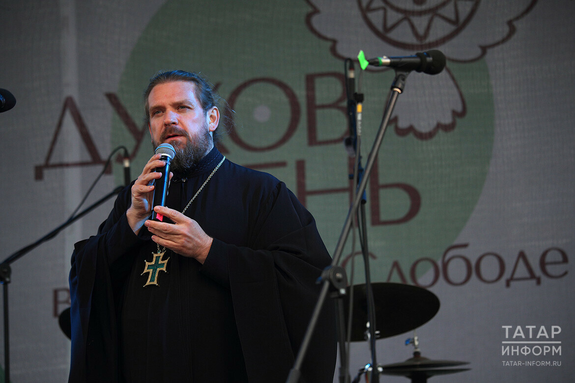 «Духов день – это престольный праздник нашего храма, который мы отмечаем как городское событие. Первые фестивали проходили на территории храма, но потом мы перешли на эту площадку, потому что желающих посетить это мероприятие стало гораздо больше. На этом поле, на котором мы сегодня, которое мы называем Духовым полем, исторически проводилась ярмарка. Здесь собирался народ в день праздника этого храма, чтобы поздравить прихожан, всех жителей Суконной слободы и всех прихожан Духосошественской церкви», – поделился настоятель храма.