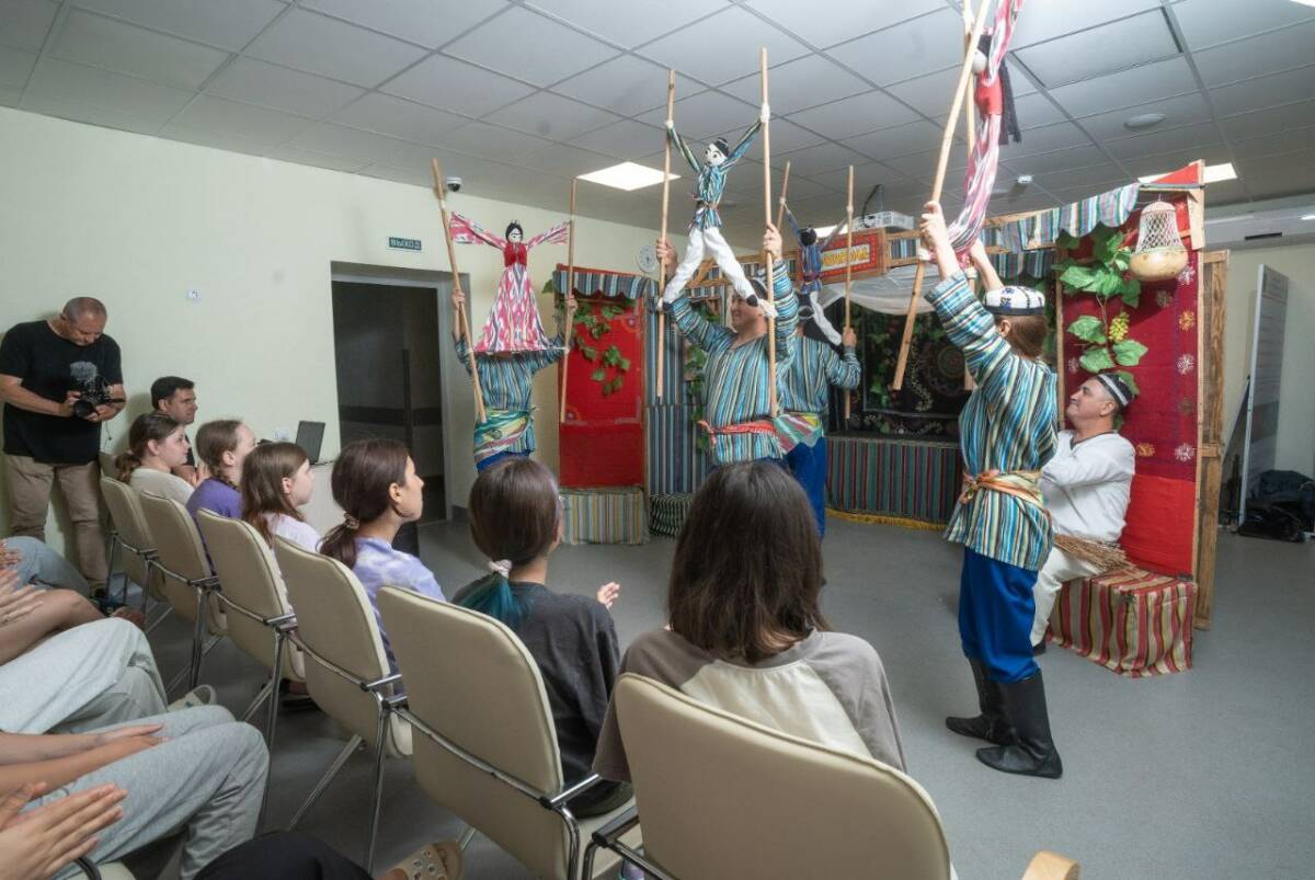 Позже в гости к пациентам педиатрии пришли артисты Ферганского областного театра кукол из Узбекистана. Они привезли спектакль «Музыкальная чайхона».