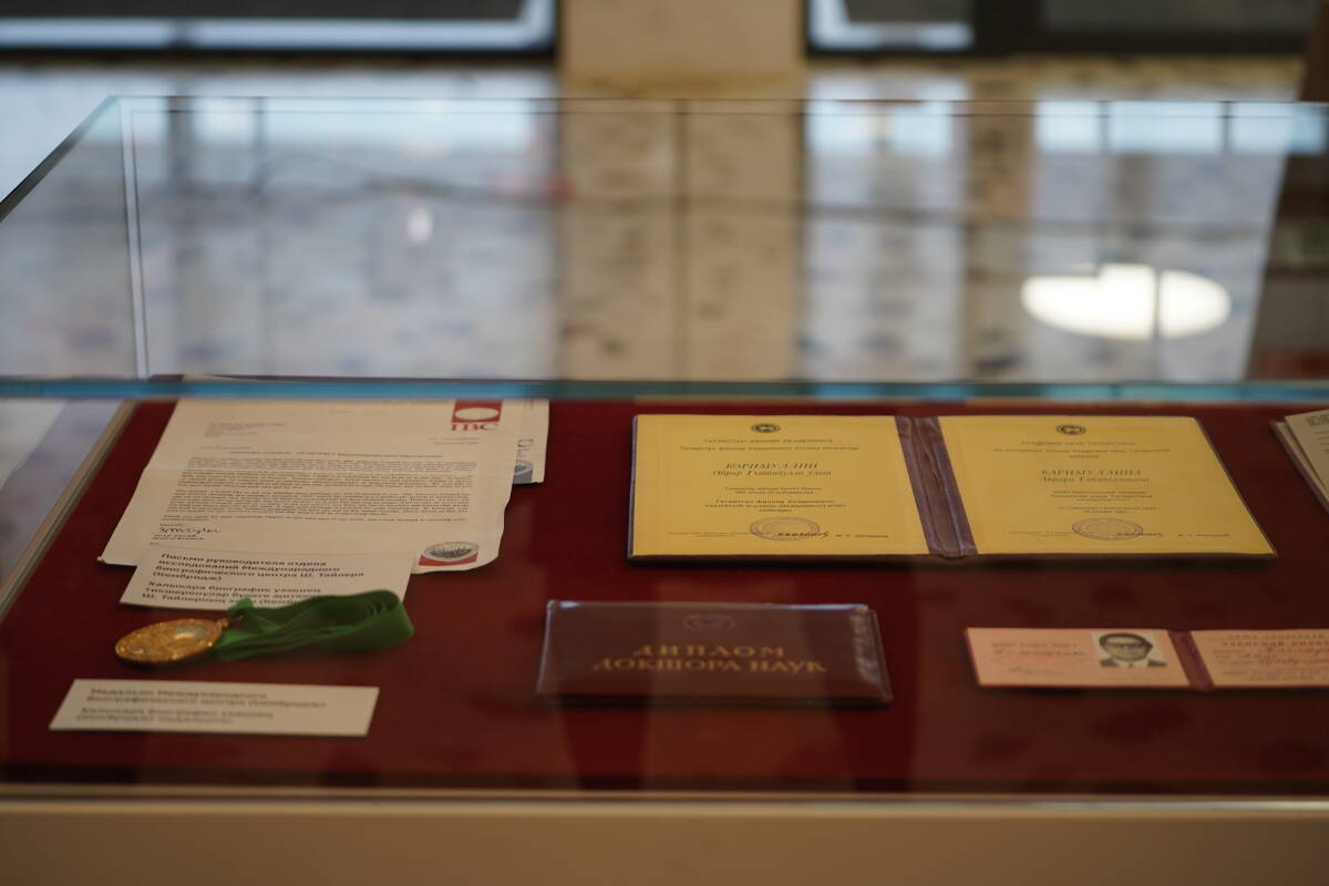 Среди экспонатов были представлены личные вещи академика: полевые дневники, боевые награды, письма от известных ученых, включая Льва Николаевича Гумилева, а также документы, подтверждающие научные достижения Каримуллина, включая дипломы, премии и членство в профессиональных организациях.