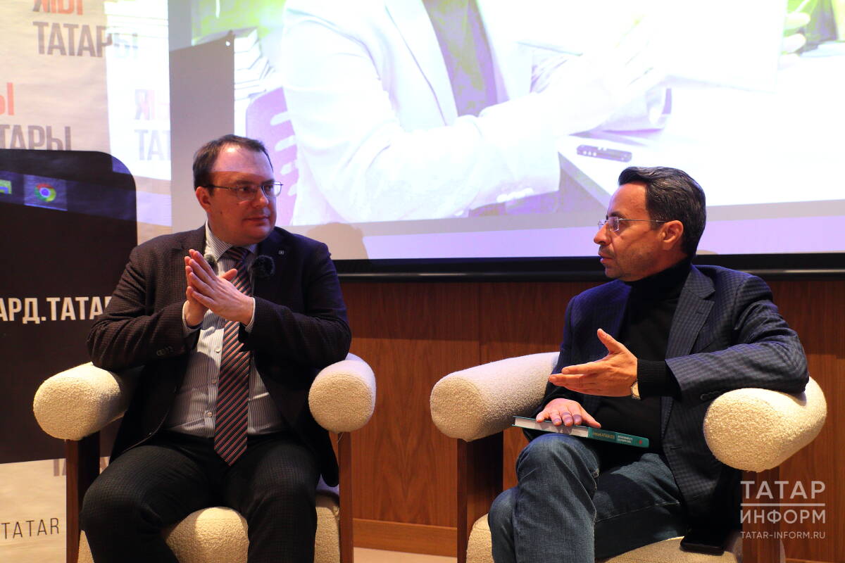 Встреча с руководителем лаборатории многофакторного гуманитарного анализа и когнитивной филологии Казанского научного центра РАН, профессором РУДН Алексеем Арзамазовым прошла в конференц-зале отеля «Ногай». Одним из модераторов встречи стал главный редактор «Татар-информа» Ринат Билалов.