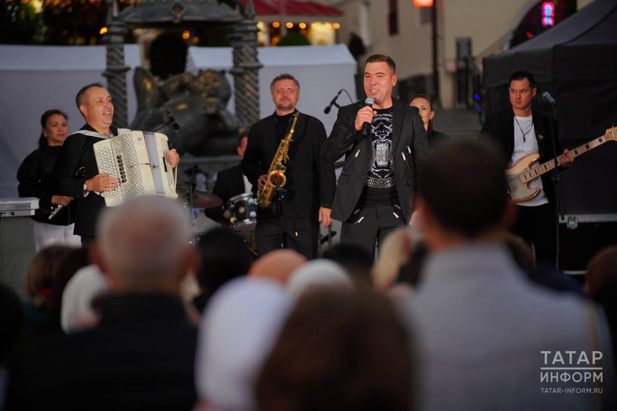 На улице Баумана в Казани народный артист Татарстана Филюс Кагиров в сопровождении инструментального ансамбля «Мирас» исполнил свои самые популярные песни.