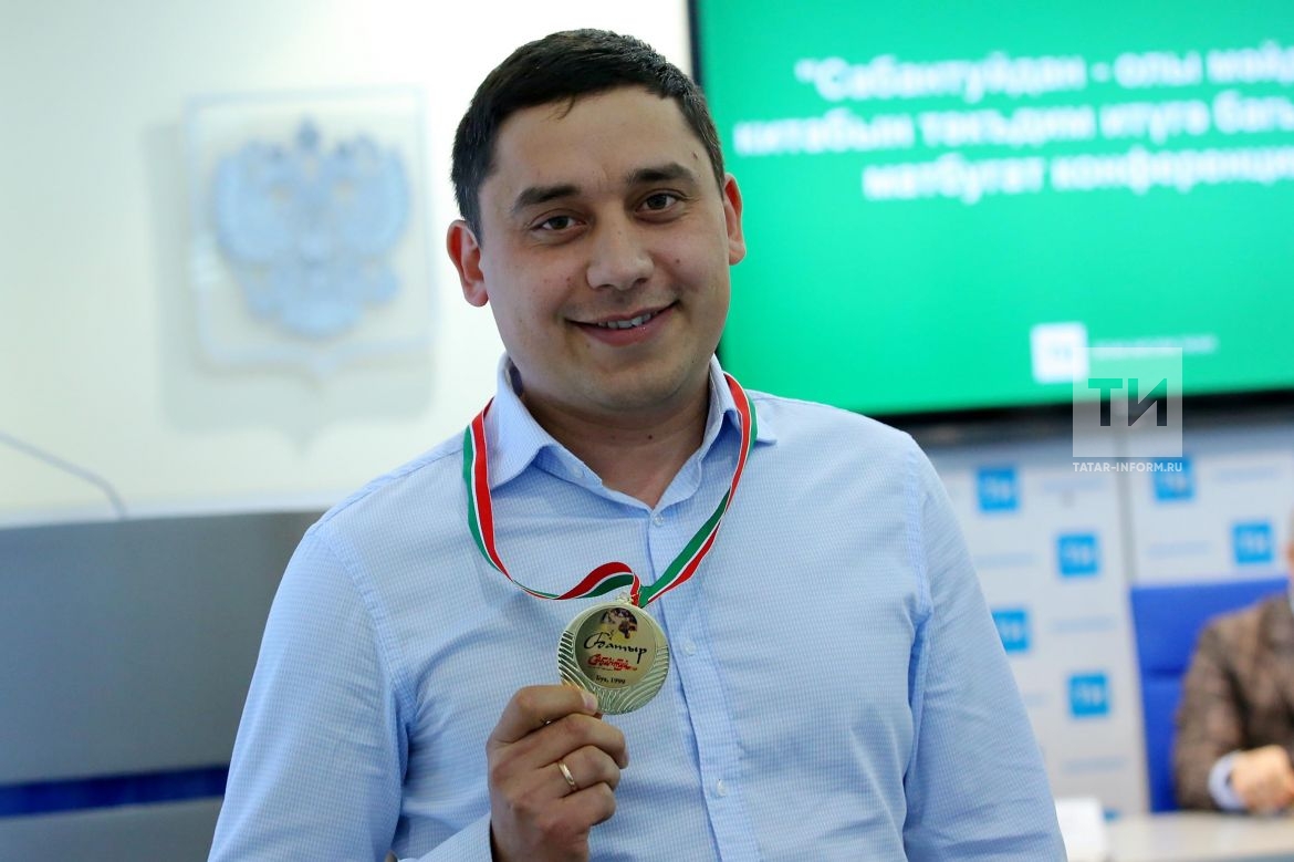 Медаль спортсмену, занявшему более двадцати лет назад третье место на соревнованиях, вручили главный редактор журнала «Сабантуй» Илназ Фазуллин и литературный редактор журнала, автор книги «Сабантуйдан – олы мэйданга» Фарит Салихов.