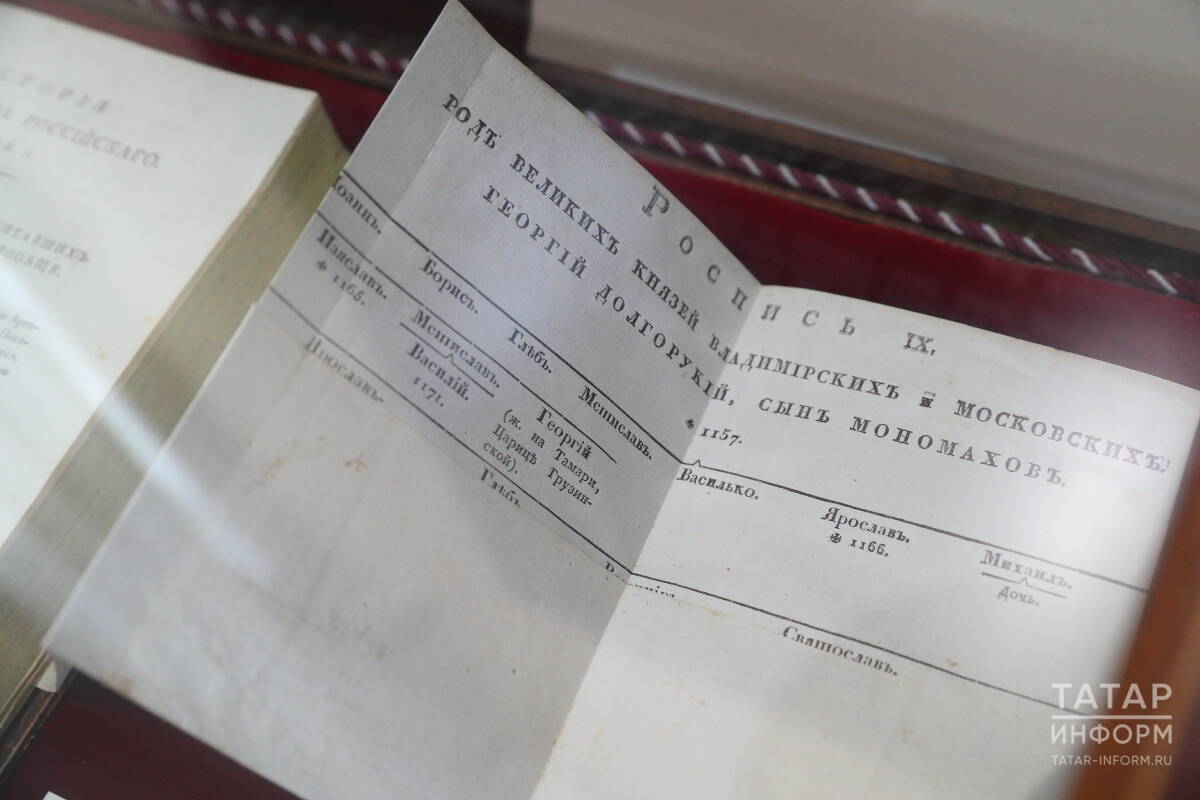 «Любую выставку, которую к нам привозят, мы стараемся дополнить собственными экспонатами. Пять представленных здесь книг – это все прижизненные издания Николая Михайловича Карамзина. Четыре из них оказались в фондах Национального музея в 1956 году – их передала вдова библиофила, педагога и организатора профессионального педобразования Александра Вилькена. А „История Государства Российского“ поступила в свое время из коллекции Чистопольского музея», – сказала заведующая музеем Боратынского Ирина Завьялова.
