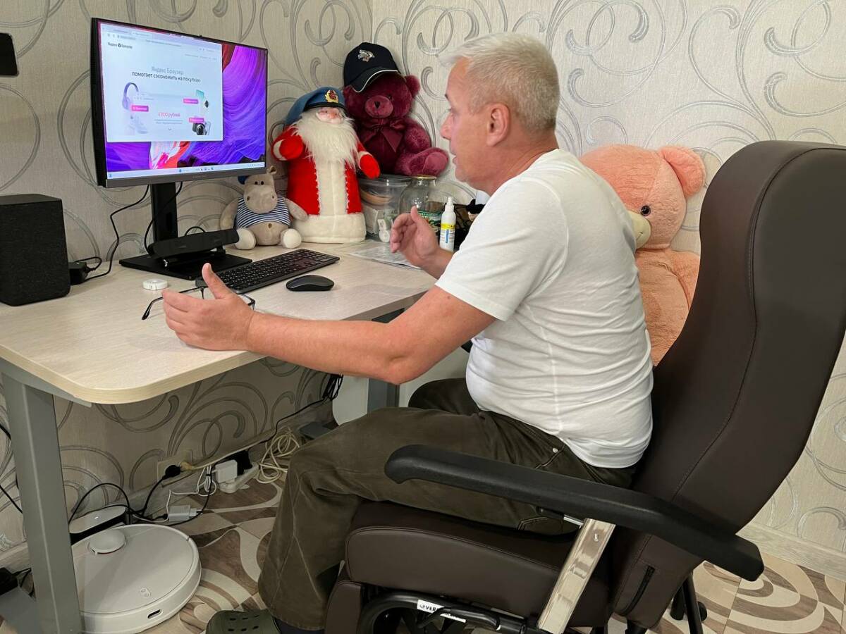 «Стул вообще замечательный, потому что <...>, [если] в какой-то момент я устану, я могу его наклонить, отдохнуть. Могу передохнуть, потому что на поясницу нагрузка. Могу его вернуть в положение и дальше работать. Иной раз мешают поручни, подлокотник. Их можно отпустить и спокойно вылезти», — рассказал боец. Также он получил робота-пылесоса, ведь самостоятельно убираться в квартире мужчине тяжело.