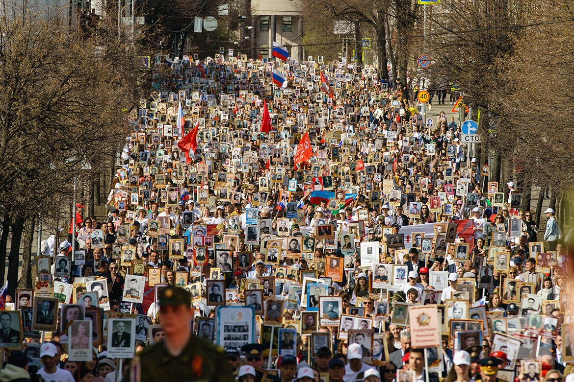 9 мая 2015 года в Москве 500 тысяч человек вышли на акцию «Бессмертного полка», которую впервые поддержал глава государства Владимир Путин с портретом отца-фронтовика. У всех было ощущение страны как одной семьи.