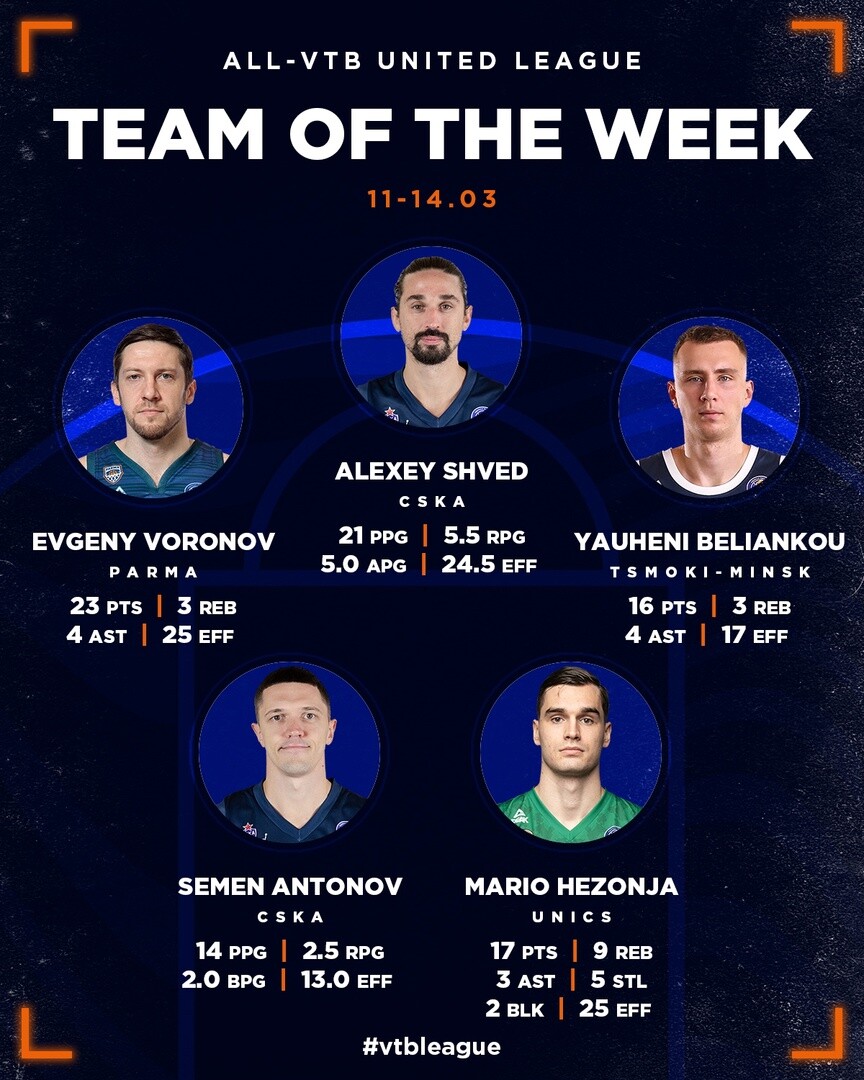 Форвард УНИКСа Марио Хезонья вторую неделю подряд в символической сборной Единой Лиги