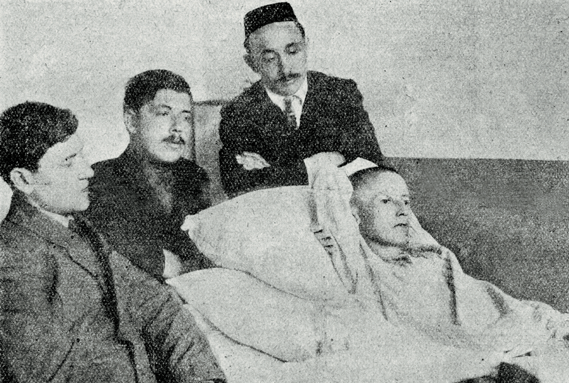 Последние дни Габдуллы Тукая. У изголовья поэта (слева направо): Габдулла Кариев, Фатих Сайфи-Казанлы, Шигаб Ахмеров. Двое последних в разные годы были репрессированы, Фатих Сайфи-Казанлы – расстрелян