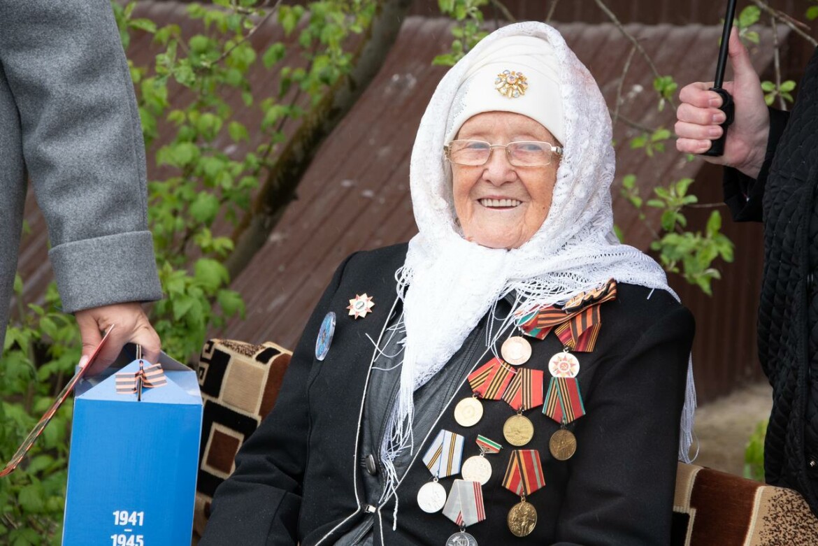 Сегодня песни и поздравления звучали для вдовы участника Великой Отечественной войны, труженицы тыла Гандалифы Талиповны Каримовой. Импровизированная сцена была развернута во дворе ее дома. Участники фронтовой бригады выразили труженице тыла свою благодарность и вручили подарок.