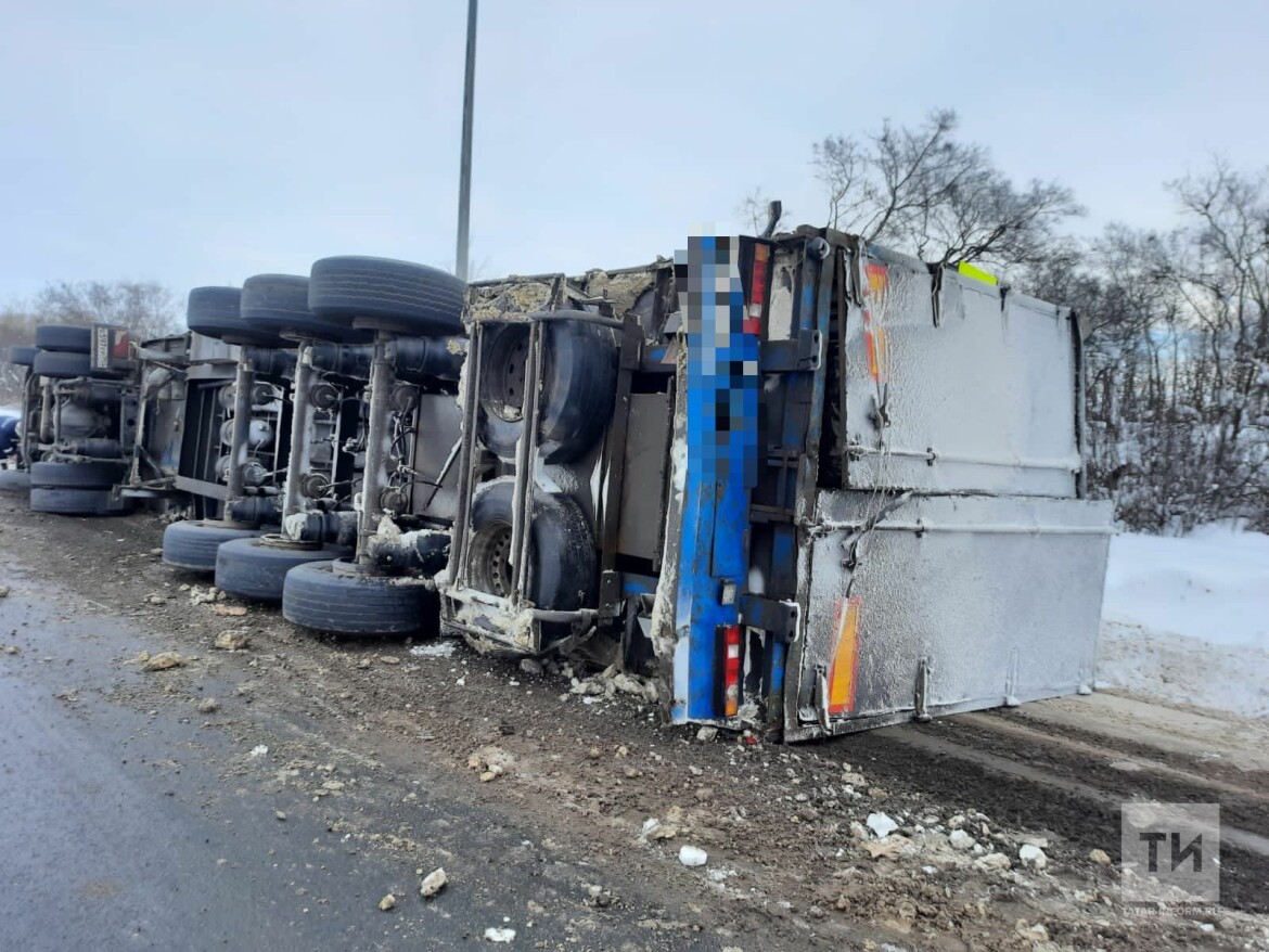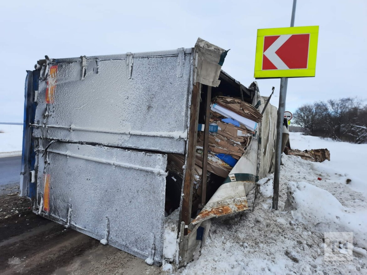 Фура из Подмосковья завалилась на бок в Татарстане, пострадал шофер