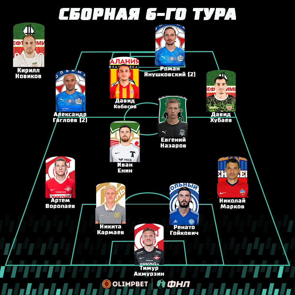 Янушковский забил два гола в домашней игре против липецкого «Металлурга» (3:0), а на счету Гаглоева один забитый мяч и одна голевая передача. Для обоих игроков – это уже второе попадание в сборную тура.