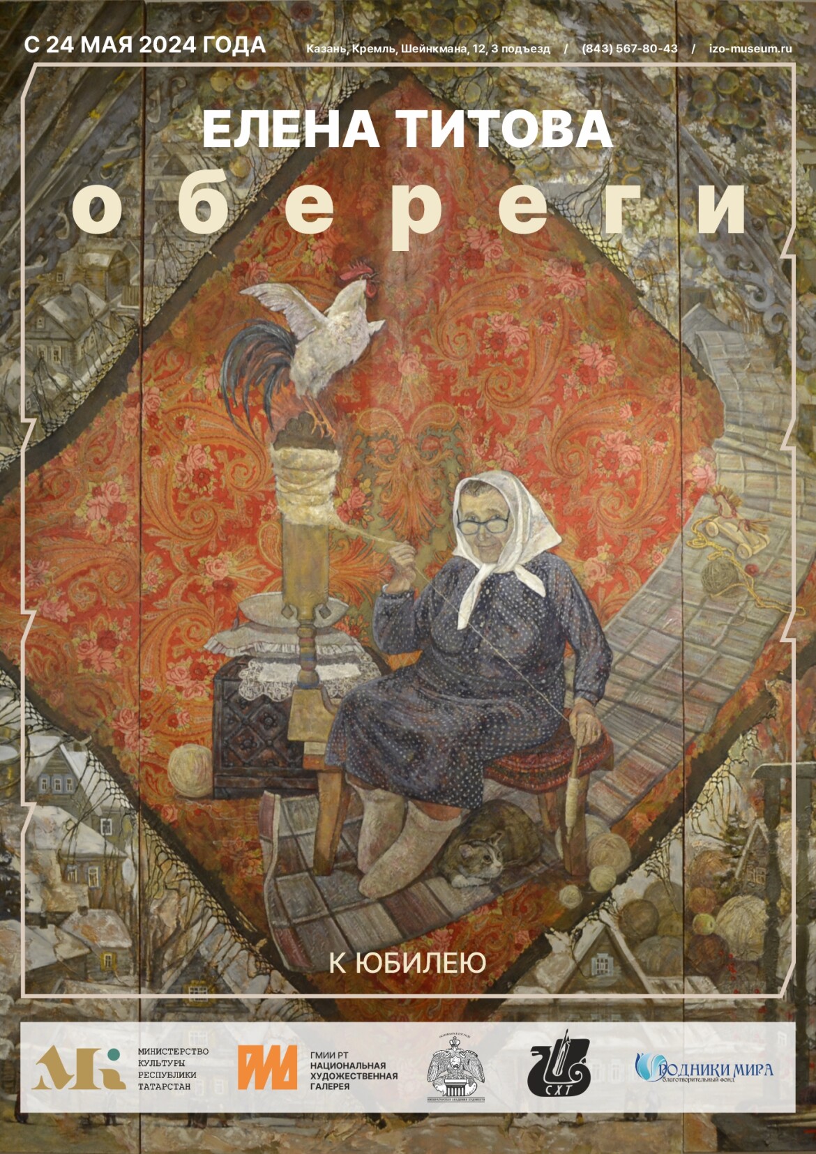 «Обереги» — это выставка про русские православные традиции, обращение к собственному прошлому, к корням своего рода. Она созвучна Году семьи, которым в России по решению Президента РФ Владимира Путина объявлен 2024-й. Помимо картин посетители галереи увидят выполненный по эскизам Елены Титовой сарафан с золотым шитьем.