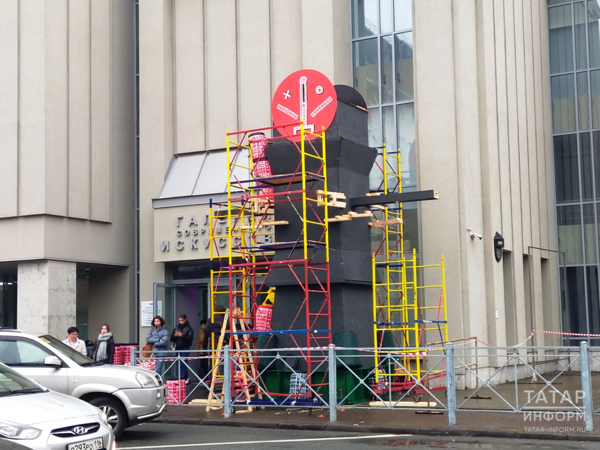 «Автор этой инсталляции – марокканский художник Медерик Тюрей. Объект называется “Тотем божества вечного сохранения воды” и посвящен экологическим проблемам африканского континента, а именно неравному и затрудненному доступу к чистой питьевой воде. Именно поэтому работа выполнена из разноцветных пластиковых емкостей для воды», – прокомментировали установку конструкции «Татар-информу» в галерее «Триумф».