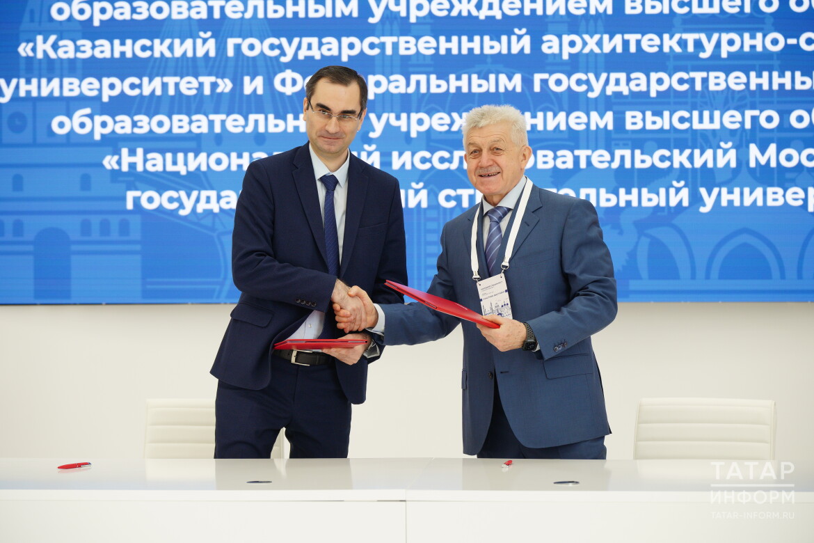Одна из целей форума – создание в столице Татарстана на базе КГАСУ Корпоративной кафедры Минстроя России. Соглашение об этом сегодня подписали ректор КГАСУ Рашит Низамов и проректор Национального исследовательского Московского государственного строительного университета (НИУ МГСУ) Таймураз Кайтуков.