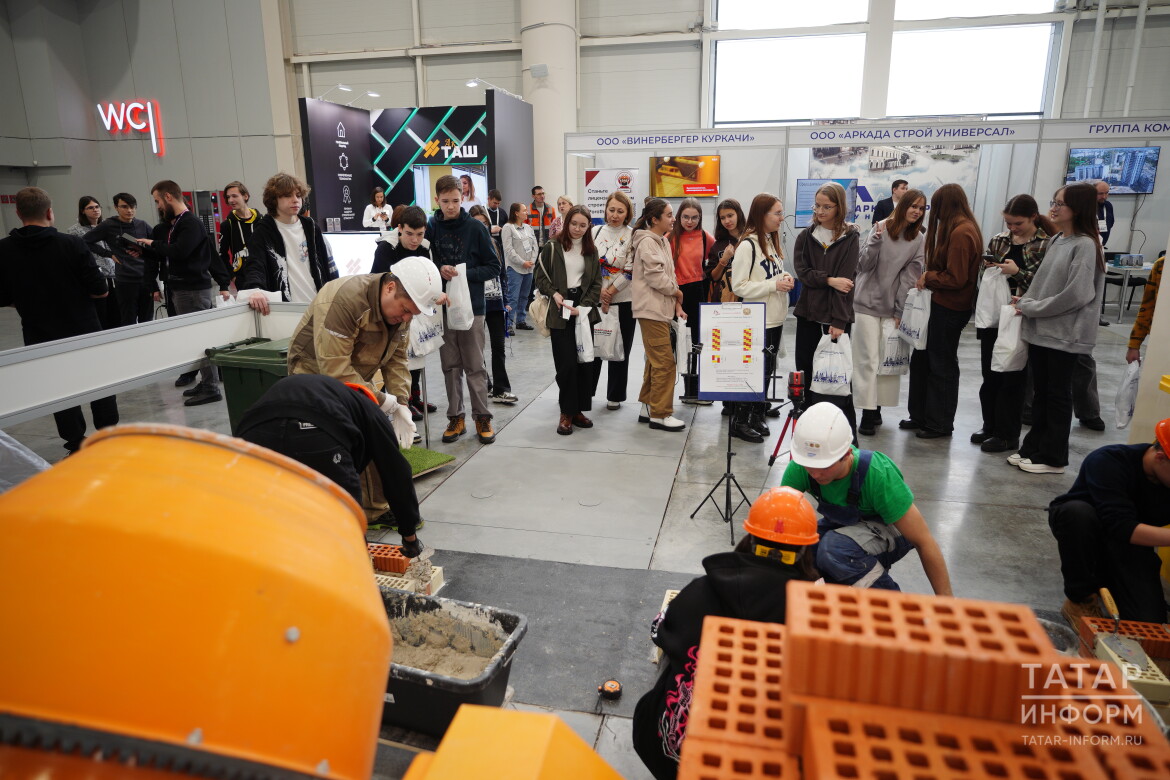 Одно из мероприятий форума – выставка компаний, работающих в строительной отрасли, и учебных заведений. Студенты Казанского колледжа строительства, архитектуры и ЖКХ здесь показательно выкладывали стену из кирпичей и бетона. Представители Камского строительного колледжа имени Батенчука демонстрировали технологию «умной» стыковки краев линолеума.