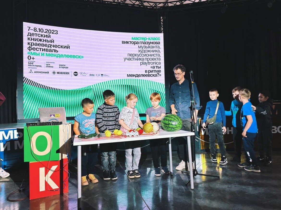 Команда креативщиков из Москвы представила менделеевцам симфонию города на детском книжном краеведческом фестивале «Мы и Менделеевск». Сыграли они при этом не на книгах, а на овощах и фруктах.