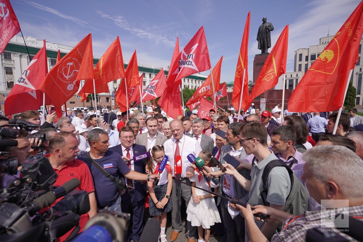 Прибывший в Татарстан председатель ЦК КПРФ Геннадий Зюганов начал свой визит с посещения памятника Ленину на Площади свободы в Казани. Здесь партийцы возложили памятные венки и цветы, почтив память вождя пролетариата.