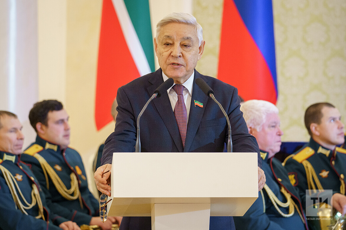 Первым с приветственным словом к Героям и их родственникам обратился председатель Государственного Совета Республики Татарстан Фарид Мухаметшин.