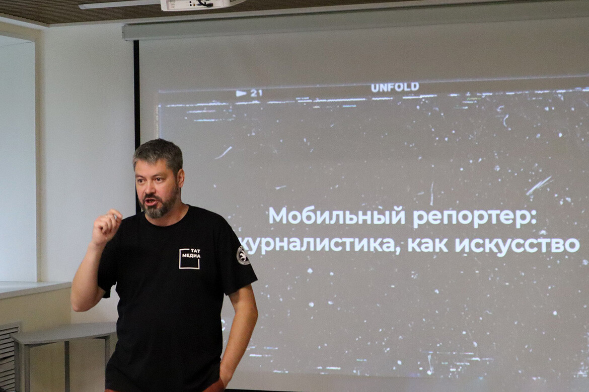 Спикер учил телевизионщиков, как стать мобильным репортером-универсалом. Рассказал про нюансы съемки на смартфон, а также про работу со звуком и монтаж. Привел в пример некоторых журналистов. Одной из них стала представительница телекомпании «Зеленый дол». Девушка в сюжете показала, как волонтеры готовят сухой душ для бойцов в зоне СВО. Работу Мукменов оценил высоко, отметив видеоряд и подачу материала.