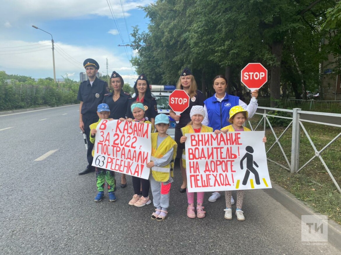 ГИБДД Казани вместе с детьми напомнили водителям о ПДД на пешеходных переходах