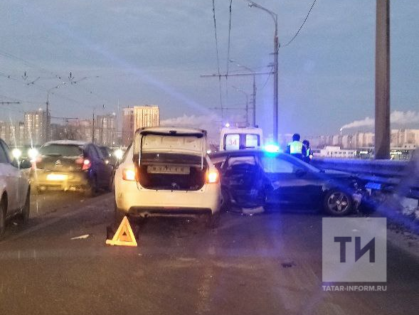 Серьезное ДТП произошло сегодня рано утром на Третьей транспортной дамбе в Казани напротив «Ак Барс Арены».