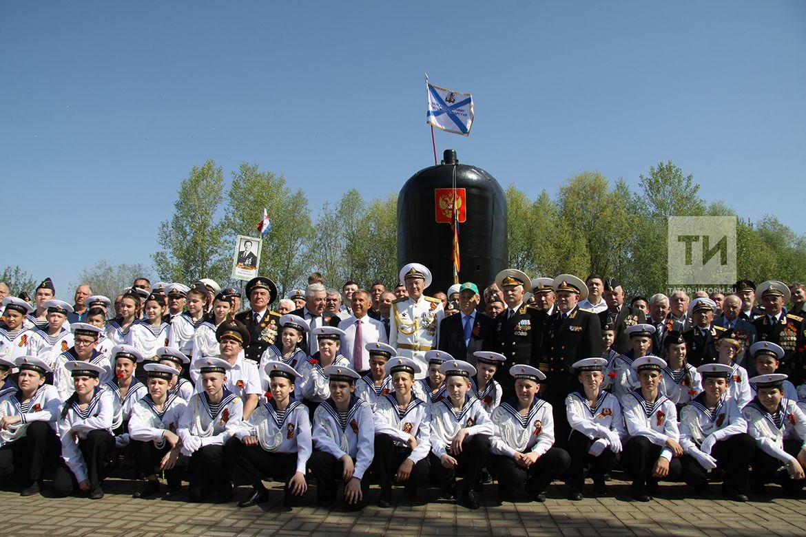 Завершилось мероприятие возле другого знакового места парка Победы – рубки атомной субмарины «Казань». Здесь Рустама Минниханова встретили участники общественной организации «Морское собрание Республики Татарстан».