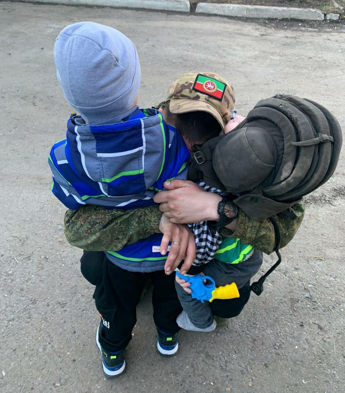 На кадрах мобилизованные обнимают родителей, детей, жен.